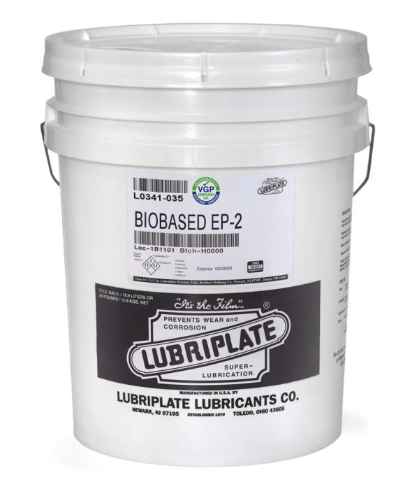 LUBRIPLATE Biobased EP-2 grease is excellent for all slow to medium bearings. It has exceptional high shear stability, excellent water resistance and outstanding load-carrying properties. It is manufactured with VGP compliant base-stocks based on vegetable oils and select additives. LUBRIPLATE Biobased EP-2 grease was designed to outperform conventional products in a variety of applications. It has excellent water resistance, good oxidative stability and a high level of protection against rust and corrosion. It passed the acute toxicity LC 50 adapted by the US fish and wild life service, and the US EPA.
